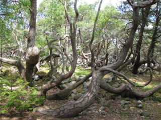 Im Inneren des Waldes gibt es etwa 15 Grabhügel und Steinsetzungen aus prähistorischer Zeit.