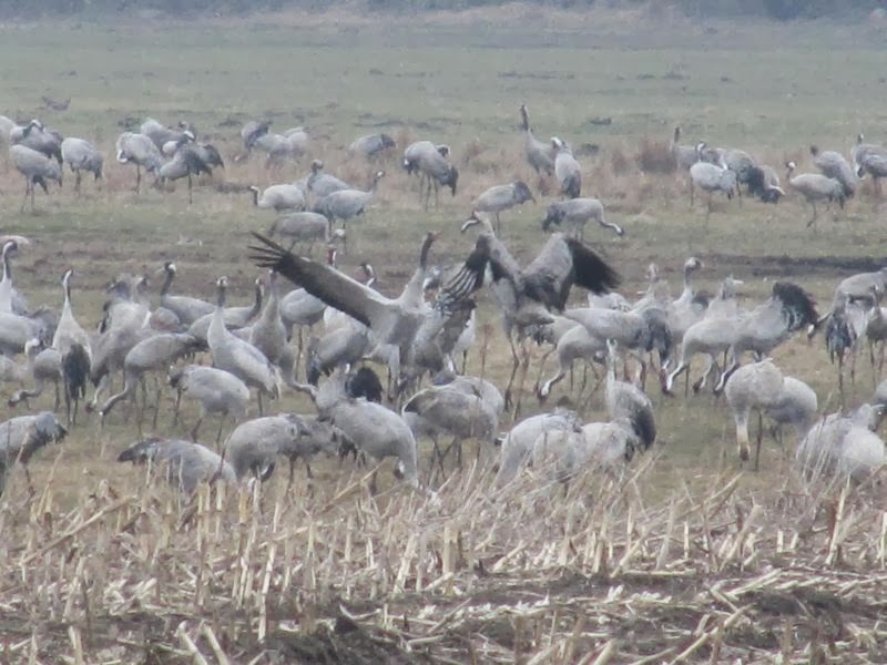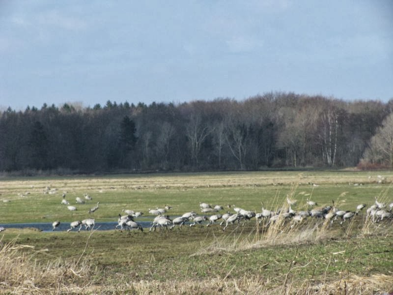 Wir sind aber schon 3x im März in Mecklenburg Vorpommern gewesen, um die Kraniche dort bei ihrer Rast zu beobachten. Im Frühling kann man dort gleichzeitig 2000 -3000 Kraniche beobachten. Im Herbst ist das Schauspiel wesentlich größer, dann rasten hier bis zu 60.000 Tiere (aber leider kommen dann auch viel mehr Menschen, als im Frühling). Aber es ist wirklich sehr schön, die Kraniche aus der Nähe zu sehen…..und den ganzen Tag, wo man geht und steht hört man die Kraniche.