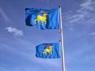 | das Wappen und die Flagge von Öland |