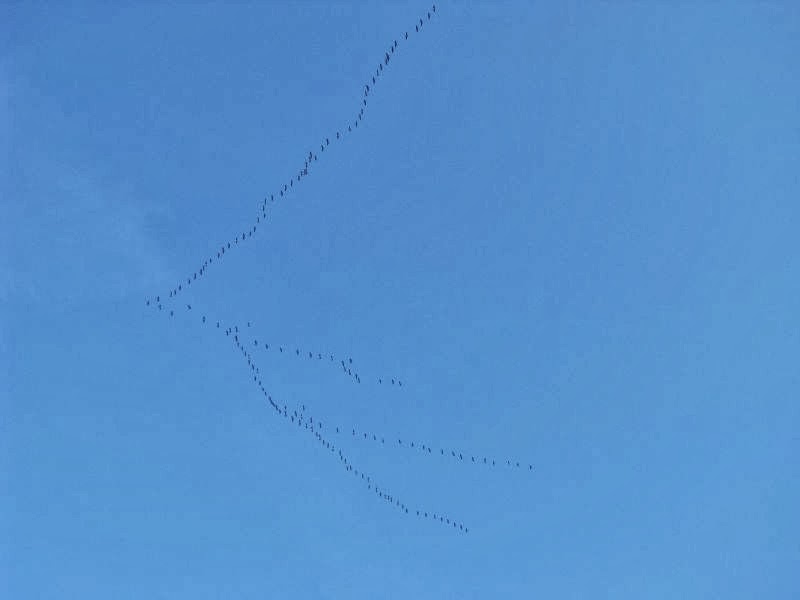 Das ist ein schönes Gefühl, wenn man den Gesang der Kraniche hört und sie dann in ihren Formationen am Himmel entdeckt. Wie alles dieses Jahr, kommen auch die Kraniche früh zu uns zurück.