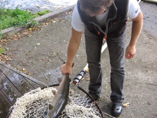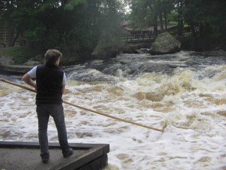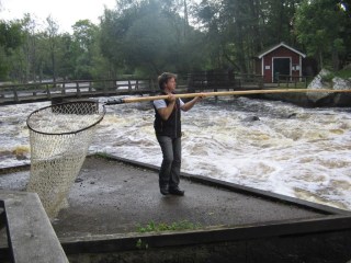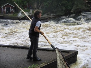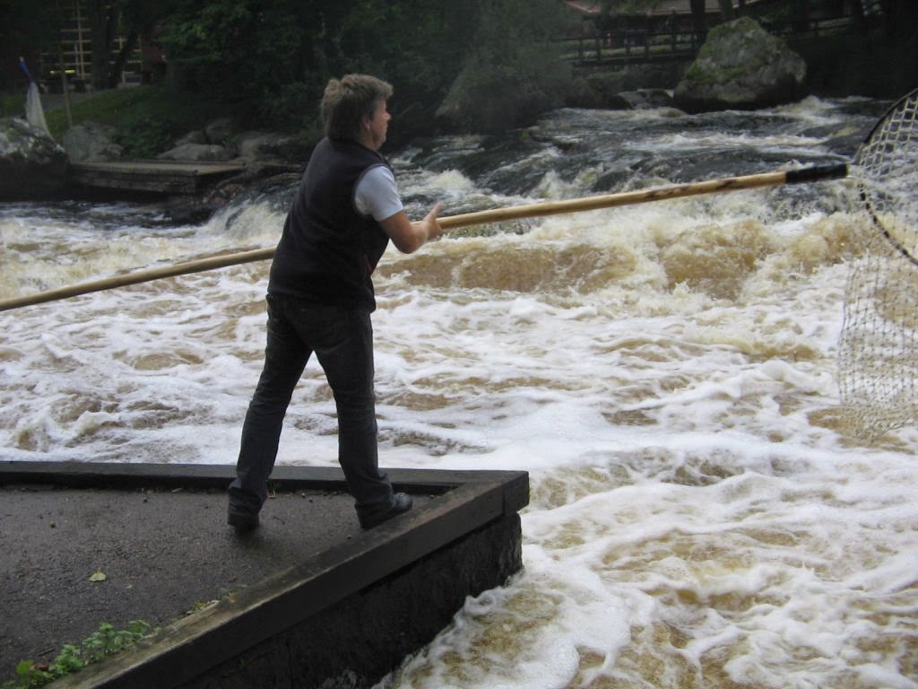 So las ich den Blog von Hasse und schrieb in einem Kommentar auf seinem Blog, das ich 2007 am Mörrum 3 Wochen Urlaub gemacht hätte und wir in den Jahren danach, jedes Mal auf der Rückfahrt von Öland in Mörrum halten, um dort Lachs zu essen. Ich erzählte, das ich dort gesehen hätte, wie Lachse mit einem großen Netz gefangen werden.