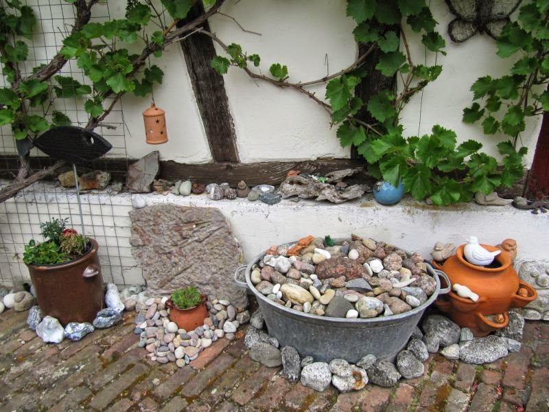 Da es heute ein Tag wird, den man drinnen verbringt, zeige ich heute meine Steinsammlungen im Hof. Wir lieben Steine und „müssen“ jedes Jahr aus dem Urlaub Steine mit nach Hause nehmen. So ist mittlerweile alles durch Steine belegt, jeder Absatz, jede Fensterbank…..aber sieh selbst: