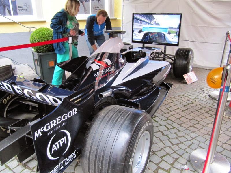 Es gab für einen Eröffnungstag jetzt nicht viel zusätzliche „Belustigung“, womit ich eigentlich gerechnet hatte, aber man konnte hier mit dem Rennwagen ein simuliertes Rennen fahren: