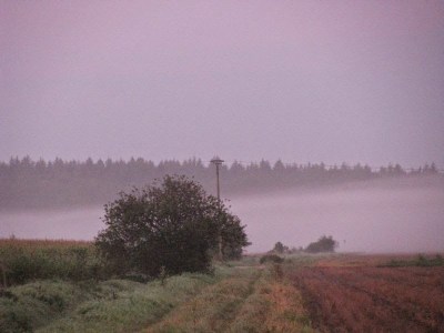 Heute morgen (Sonntag) musste ich ausnahmsweise auf die Arbeit fahren. Bei uns gibt es viele Mitarbeiter, die krank sind und so musste ich heute einspringen. Um 7:00 Uhr heute morgen ging gerade die Sonne auf und der Morgentau stieg hoch.