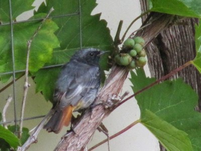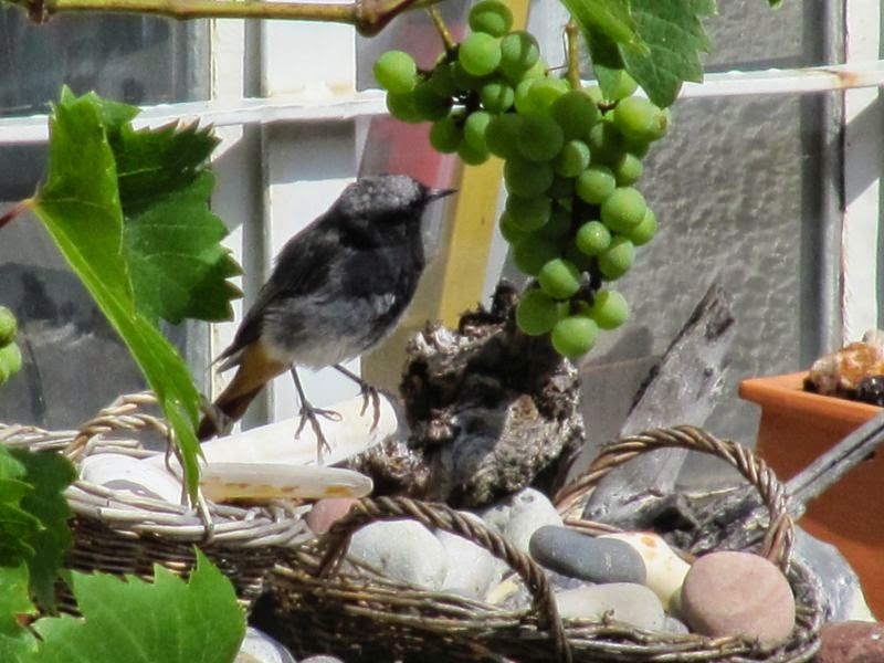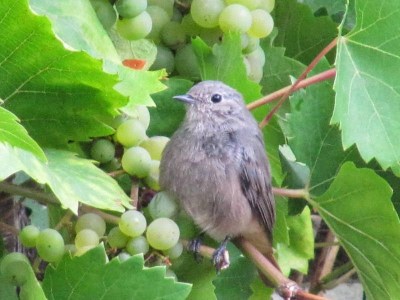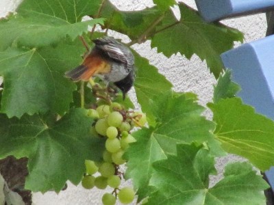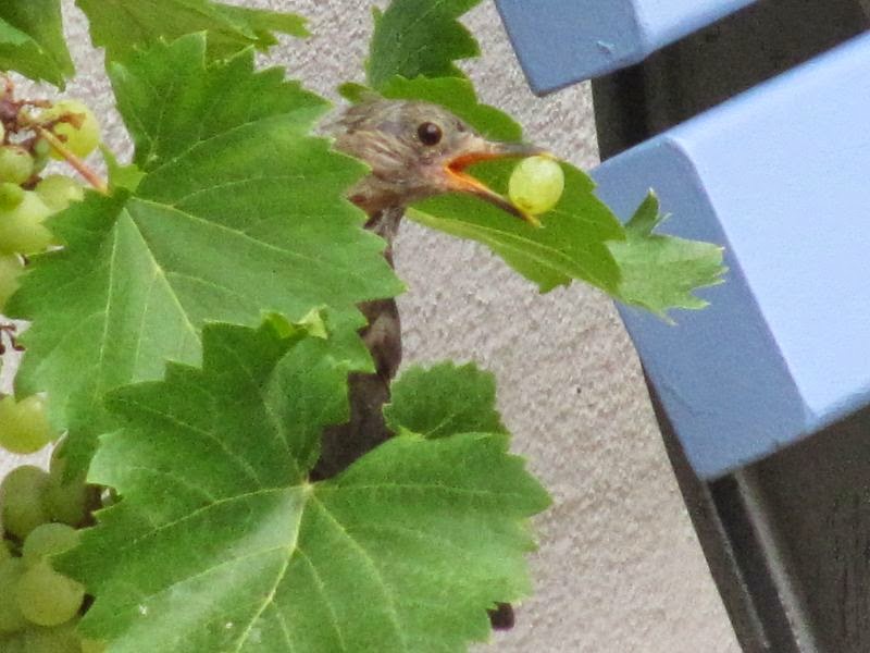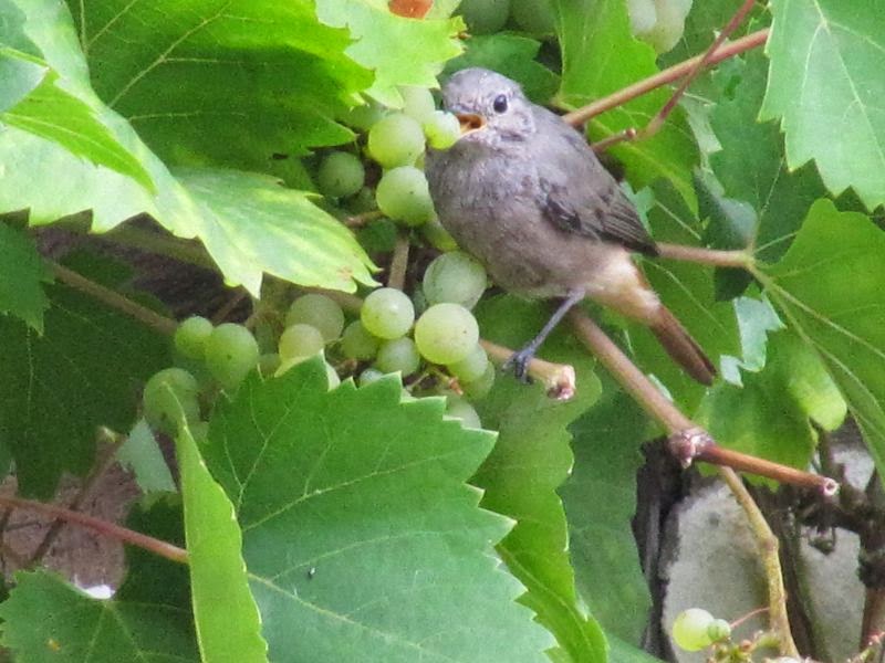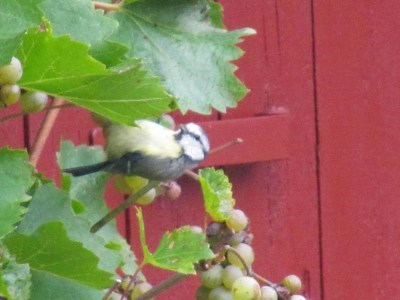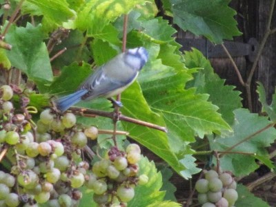 Bei den Blaumeisen glaube ich, das sie nur die Raupen, Spinnen usw. aus der Rebe holen, aber allen anderen, sogar den Spatzen schmecken die Trauben sehr gut.