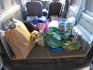 So sah unser Auto aus, als wir wieder zu Hause ankamen…viele Einkäufe: