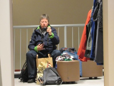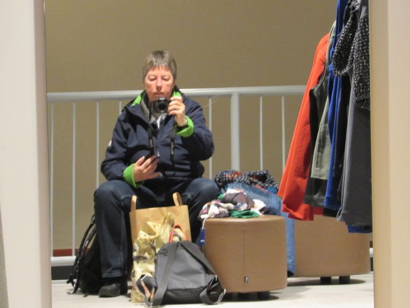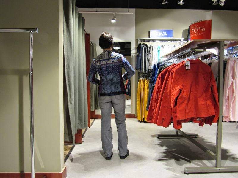 Brigitte bei ihrer Lieblingstätigkeit: Klamotten anprobieren: