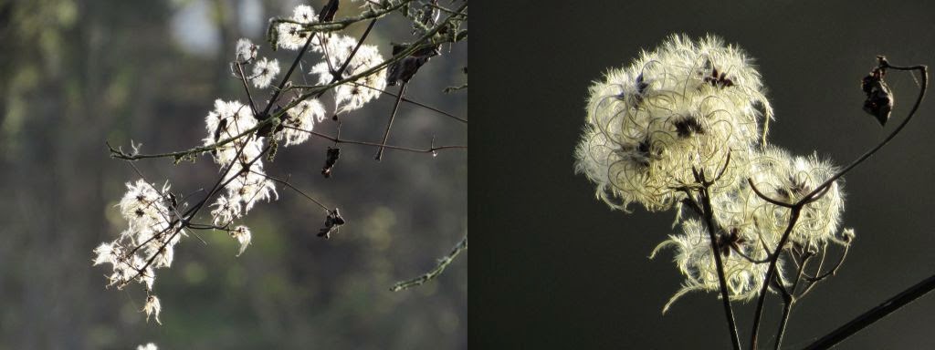Die Blüten der wilden Clematis, die jetzt überall über den Büschen hängen: