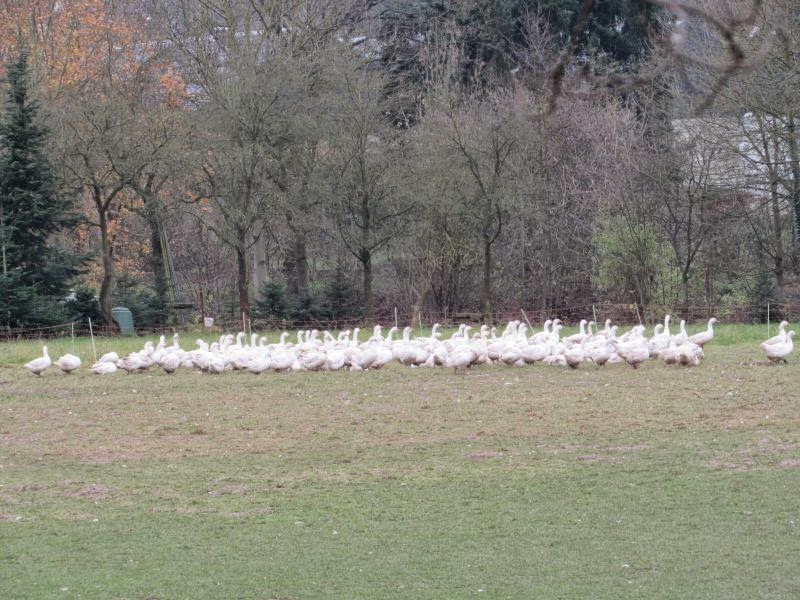 und da sah ich sie, die Weihnachtsgänse….ja, sie haben nur noch kurze Zeit…aber zumindestens konnten diese Gänse draußen mit viel Auslauf leben….