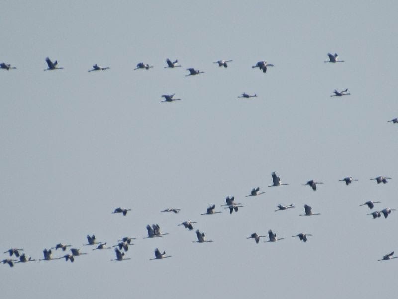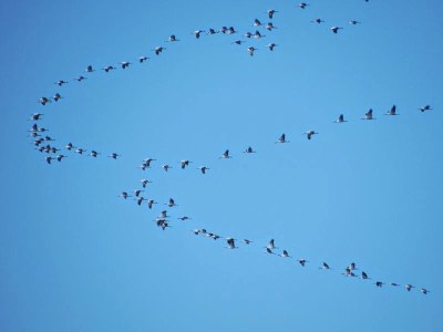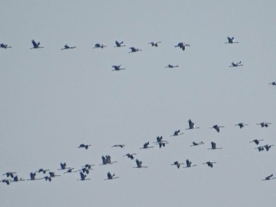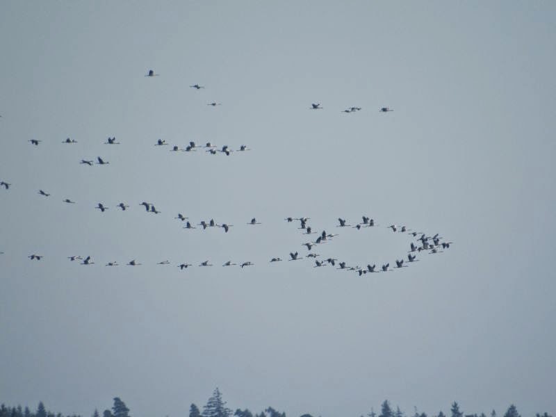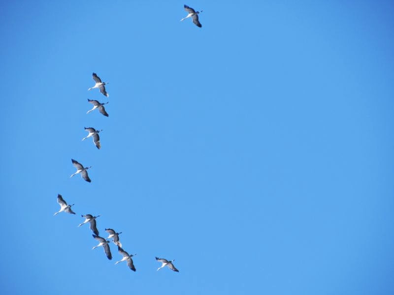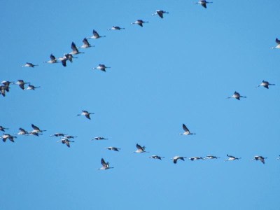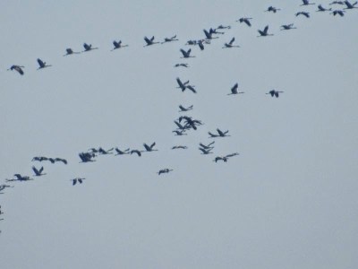Und schon zu Hause flogen ganz viele Kraniche über unser Haus Richtung Süden: