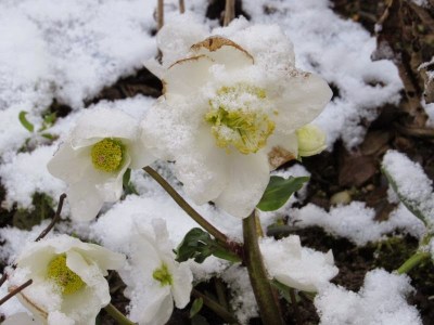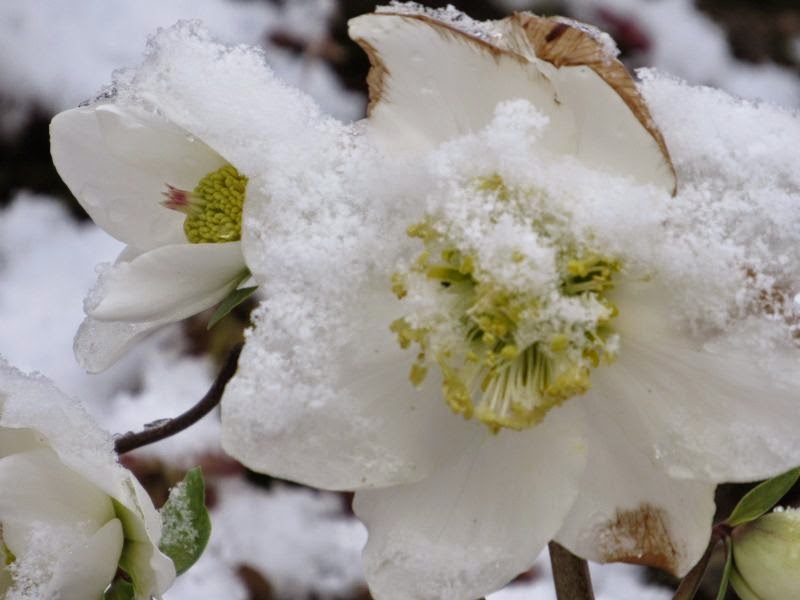 Ansonsten hier noch ein paar Fotos von weißen Blumen im Schnee: