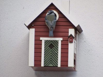 Die Meisen haben bei uns kaum eine Chance einen Brutplatz zu ergattern, da die Spatzen alles besetzen. Ich habe schon extra Nester für die Spatzen gebaut, aber sie bewohnen mittlerweile auch die Häuschen für Meisen und auch das für das Rotschwänzchen. Aber in diesem „Schwedenhäuschen“ haben voriges Jahr die Kohlmeisen 2 mal gebrütet. Mal gucken, wie es in diesem Jahr wird.