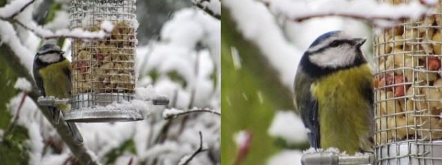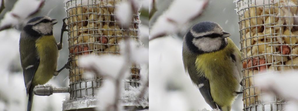 Heute ist der 31. Januar und schon geht der „Streit“ um die Vogelhäuschen los. Ich schaute heute morgen aus dem Fenster, weil ich ein eigenartiges Gepiepse hört. Wie ich dann sah, kamen diese Töne von 2 Blaumeisen und einer Kohlmeise. Einer der Vögel flog das Vogelhaus an und klammerte sich an das Einflugloch, dann kam von hinten die andere Meise und griff richtig an, so das beide Vögel irgendwie zusammen in die darunter stehende Hortensie flogen mehr fielen. Das wiederholte sich einige Male, bis die Kohlmeise sich geschlagen gab.