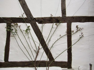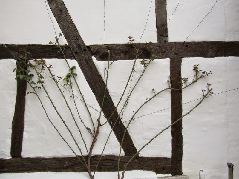 Die herunter geschnittene Rose treibt langsam wieder aus