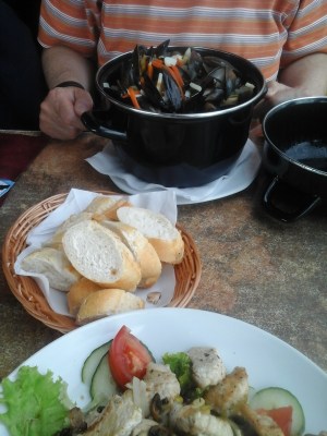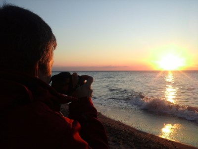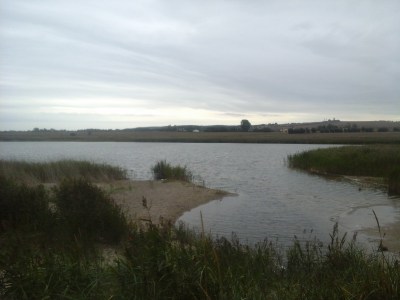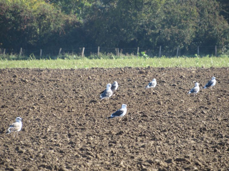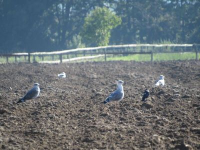 Und wenn man jetzt das Foto oben genau anguckt oder vergrößert, dann sieht man auf dem Feld vorne weiße Punkte, das sind Möwen.