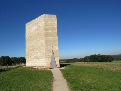 Gestern, bei diesem herrlichen Wetter habe ich eine große Runde mit dem Fahrrad unternommen und bin dabei wieder an der Bruder Klaus Kapelle in Wachendorf vorbei gekommen. Ich hatte schon einmal Bilder davon hier eingestellt, aber ich mache es heute noch mal, weil dieses Gebäude bei diesem blauen Himmel so fantastisch aussah.