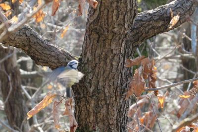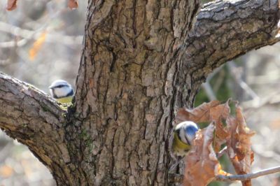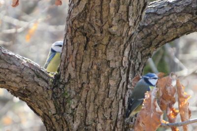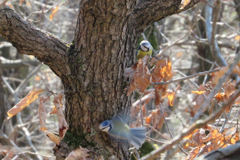 Der Weg führte uns durch den Wald, wo es bereits ein Konzert der Vögel gab. Diese beiden Blaumeisen flogen ganz „verliebt“ immer und immer wieder, ganz aufgeregt, gemeinsam um diesen Baum herum: