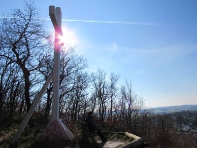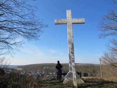 Gestern erreichten wir auf unserer Wanderung das große weiße Kreuz oberhalb des Ortes Kreuzweingarten: