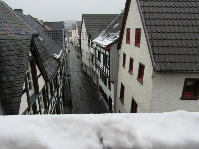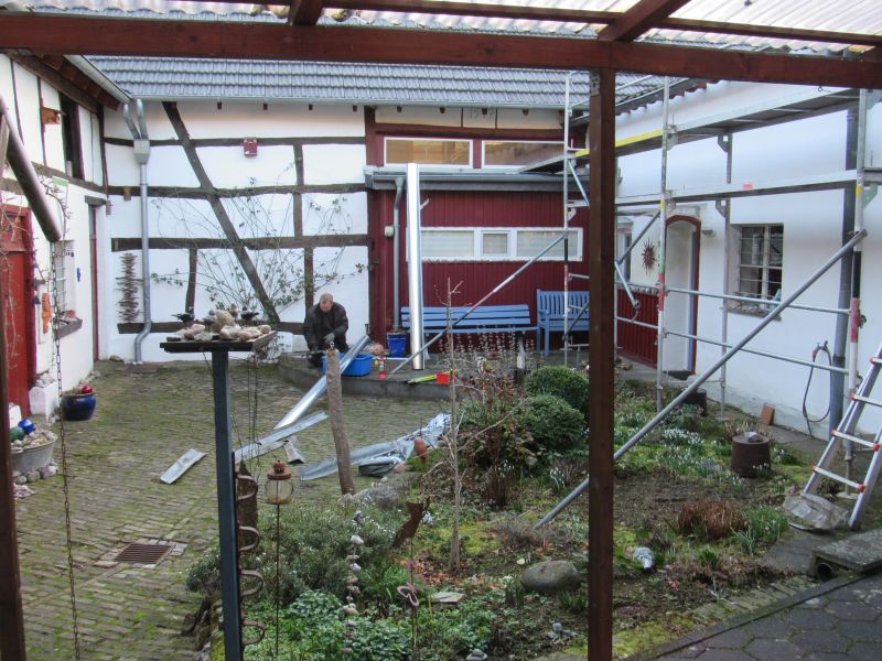 Im Hof schafft die Sonne es jetzt endlich wieder bis auf den Boden: