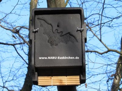 Diesen Fledermaus Nistkasten sahen wir im Wald: