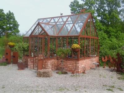 Sie präsentierten ihre Kunst in diesem wunderschönen Metallglashaus.