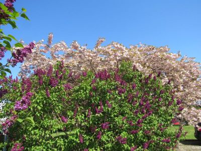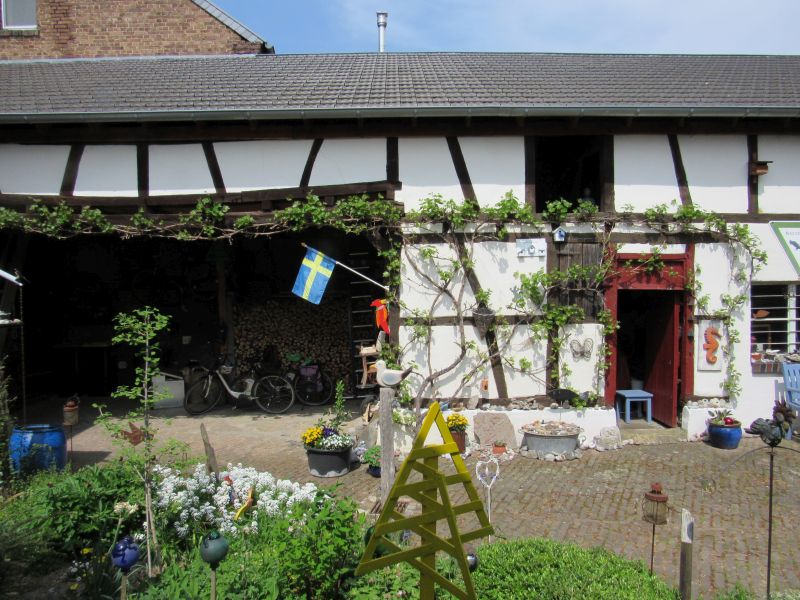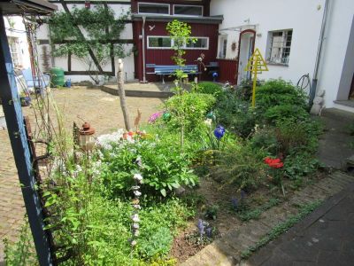 Hinter dem Haus, ist jetzt auch noch alles ordentlich, aber die ganzen Rosen werden blühen, teilweise schon verblühen und wachsen, wachsen, wachsen….