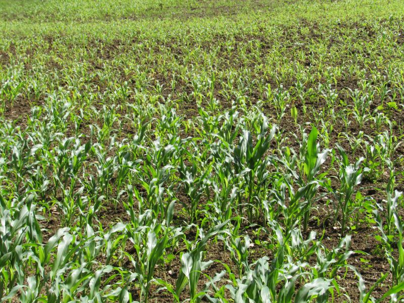 Der Mais ist noch nicht so hoch, wie sonst, aber an einigen Stellen wird er auch immer noch mit Gülle überschüttet:
