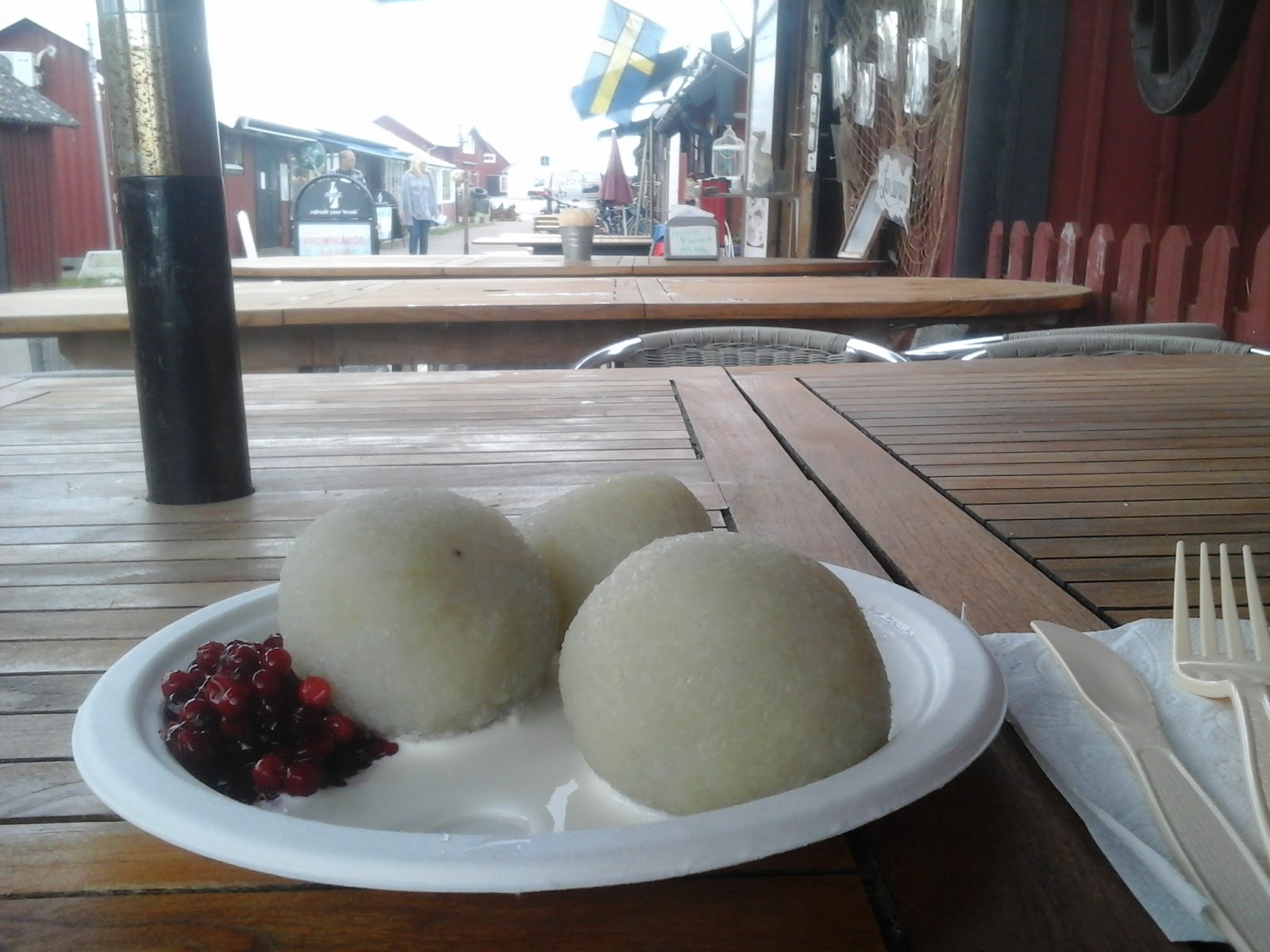 In Byxelkrok angekommen, gab es keinen Regen und wir haben im Hafen Kroppkakor gegessen.
