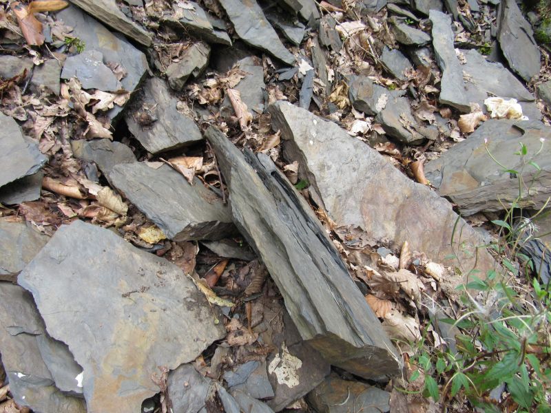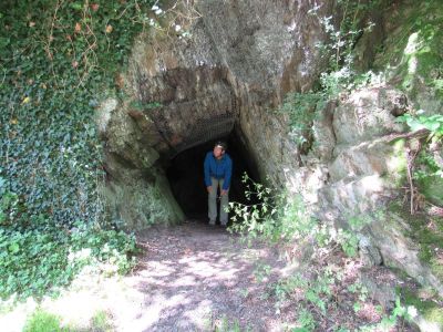 | hier ein Luftschutzbunker, den sich die Leute im 2. Weltkrieg in den Schiefer gesprengt hatten |