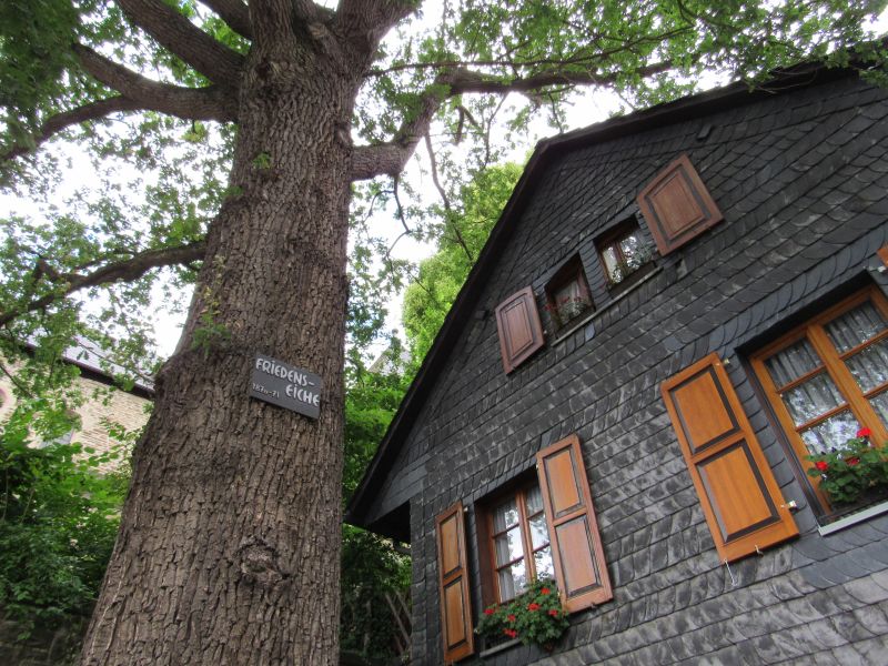 Auf dem Rückweg haben wir unter dieser „Friedenseiche“ von 1870 noch ein Eis gegessen.