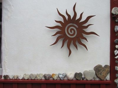 | überall Kunst am Wegesrand, hier saßen viele Schmetterlinge auf dem Kunstwerk |