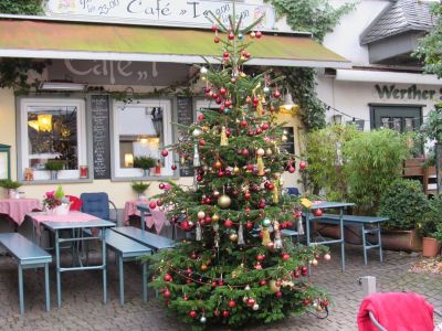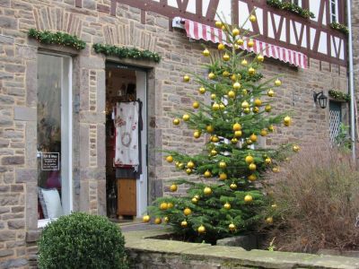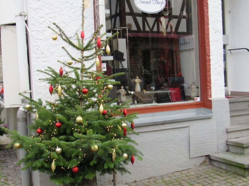 Mir fiel das Ganze auf, weil ich mich gestern morgen mit einer lieben Freundin zum frühstücken im „Cafe T“, in Bad Münstereifel getroffen habe. Ich bin nur die kurze Strecke vom Stadttor bis zum Cafe gegangen und auf diesem kurzen Stück standen schon 5 geschmückte Weihnachtsbäume……hier die 3 schönsten: