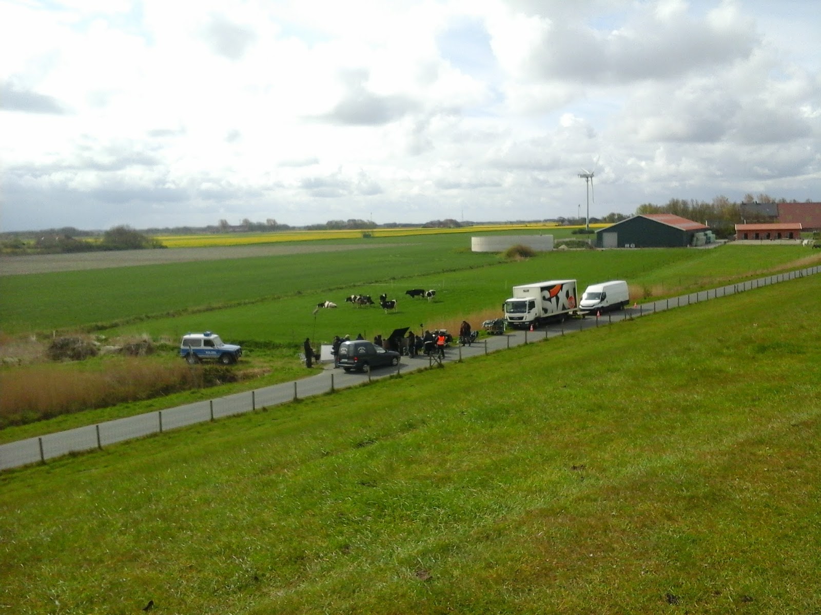 Schon ist die Woche um, das geht leider immer so schnell. Morgen geht es wieder nach Hause. Das Wetter ist ein kleines bisschen schöner geworden, aber es war ein kalter Urlaub. Die Fahrräder kamen nicht zum Einsatz, ich bin nur gestern eine Runde gefahren und habe dabei beobachtet, wie hinterm Deich ein Film gedreht wurde.