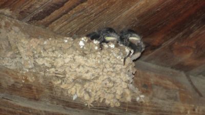 Auf dem Dach gegenüber treffen sich die kleinen Mehlschwalben: