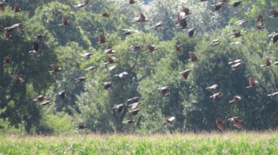 Auf einer meiner Fahrradtouren, die ich trotz schlechtem Wetter immer wieder versuche, flogen vor mir diese Stare auf:
