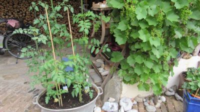 Im Hof werden die Tomaten reif und es gibt jeden Tag ein paar Erdbeeren: