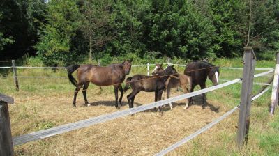 Dieses kleine Fohlen guckte neugierig, aber dann kam auch schon die Mutter: