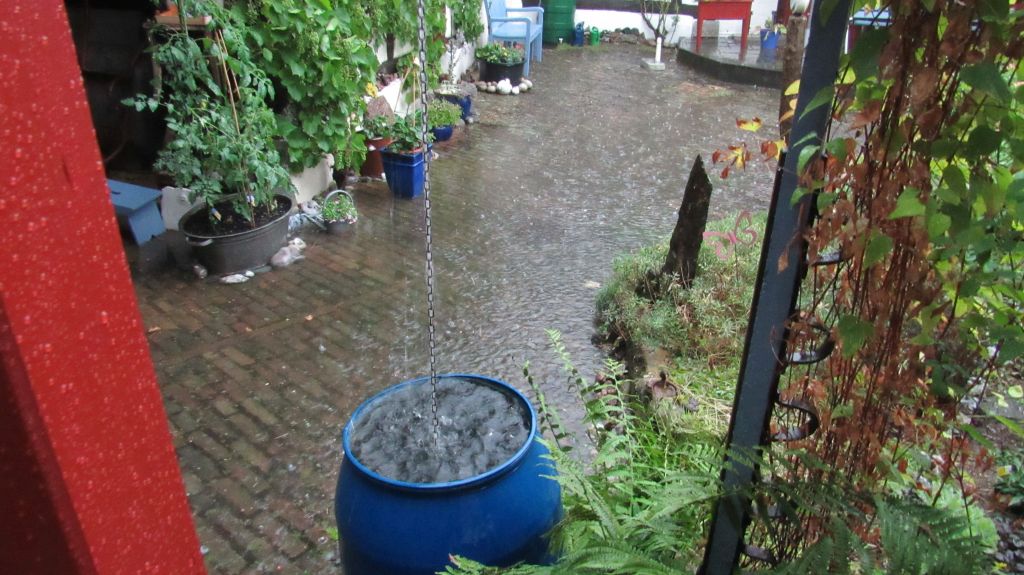 Zurzeit kann man unseren Sommer hier als verregnet betrachten. Heute ist es bewölkt und wieder 21 Grad warm, aber die vergangenen Tage hat es immerzu geregnet und es war kalt, 14 Grad. Laut Vorhersage ist der große Regen zwar jetzt vorbei aber es soll unbeständig bleiben. Das kühlere Wetter ist angenehmer als die unerträgliche Hitze, aber der viele Regen ist natürlich nicht so schön.