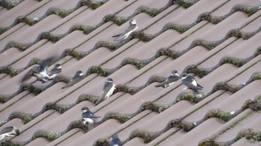 Auf dem Dach gegenüber treffen sich die kleinen Mehlschwalben: