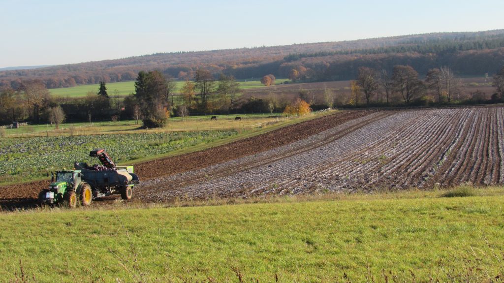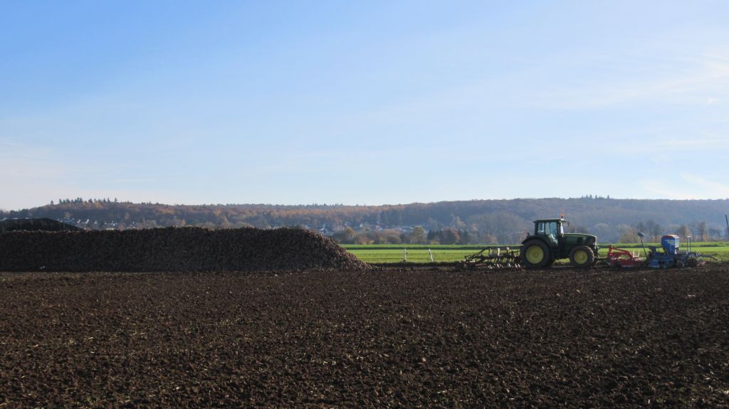 Auf den Feldern wird noch fleißig gearbeitet. Die Rüben sind geerntet und es wird sofort neu gesät.