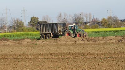 Auf viel Felder wird die Erde, die an den Zuckerrüben klebt und in der Zuckerfabrik ab gewaschen wird, wieder auf die Felder zurück gebracht.