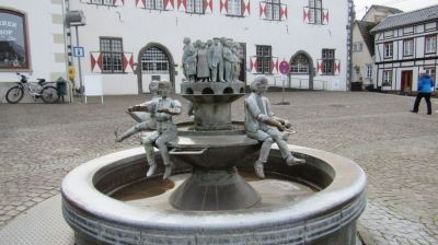 Es gibt einige schönen Brunnen, die aber noch ohne Wasser sind: