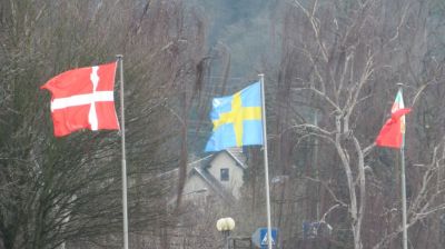 Wie man oben sieht, ganz rechts im Bild die schwedische Flagge. Unten noch einmal näher:
