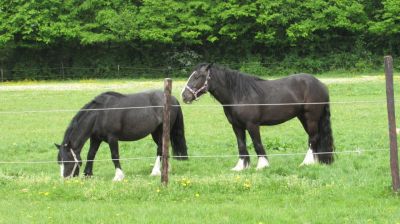 Heute kam ich an einer Wiese vorbei, dort gab es 2 schwarze Pferde: