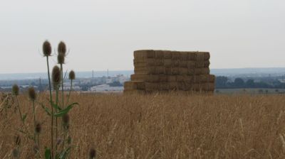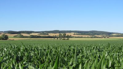 Der Mais steht noch, ist aber in diesem Jahr nicht sehr hoch und hat kaum Maiskolben: