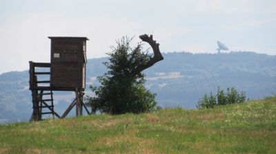 und von der gleichen Stelle aus fotografiert, nur in die entgegen gesetzte Richtung, mit Hintergrund Radioteleskop Stockert: