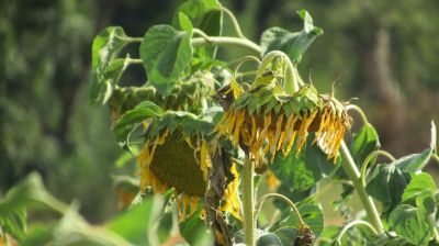Auch die Sonnenblumen lassen die Köpfe hängen: