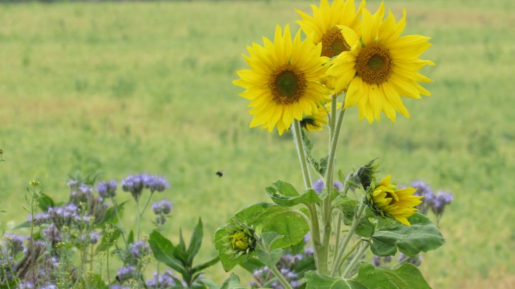 Auch die Sonnenblumen lassen die Köpfe hängen: