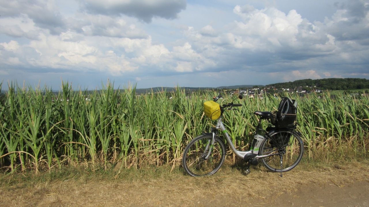 Die Hitze hält an, nur gestern gab es einmal eine kleine Pause, Gewitter waren angesagt. Bei uns gab es kein Gewitter, nur 3 Tropfen Regen, aber die Luft kühlte ab und es war windig. Endlich konnte ich am Abend mal eine Runde mit dem Fahrrad fahren.