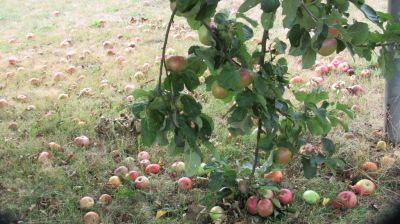 Aber das Obst ist gut, auch wenn schon eine Menge herunterfällt, wie hier die Äpfel.